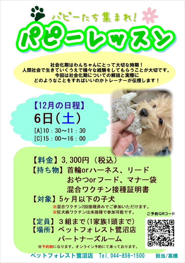 【2025年12月6日(土)】パピーレッスン開催🐾