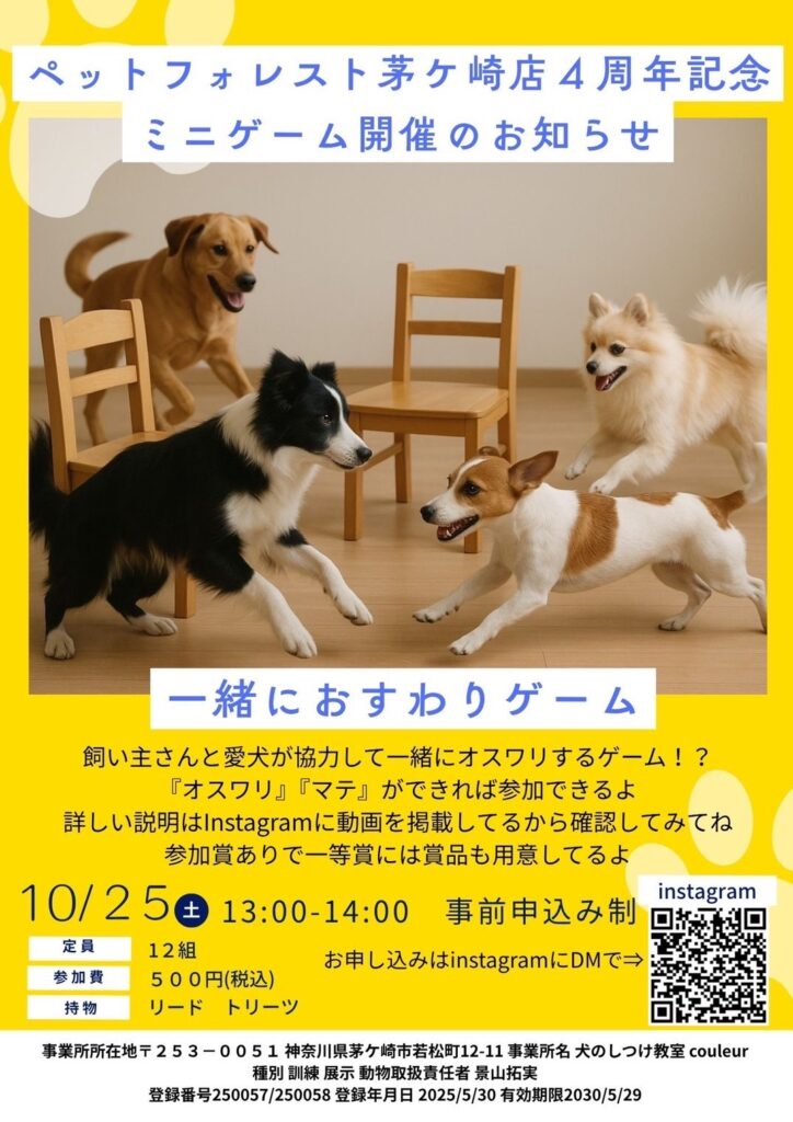 10月25日(土)いっしょにおすわりゲーム開催のお知らせ📢