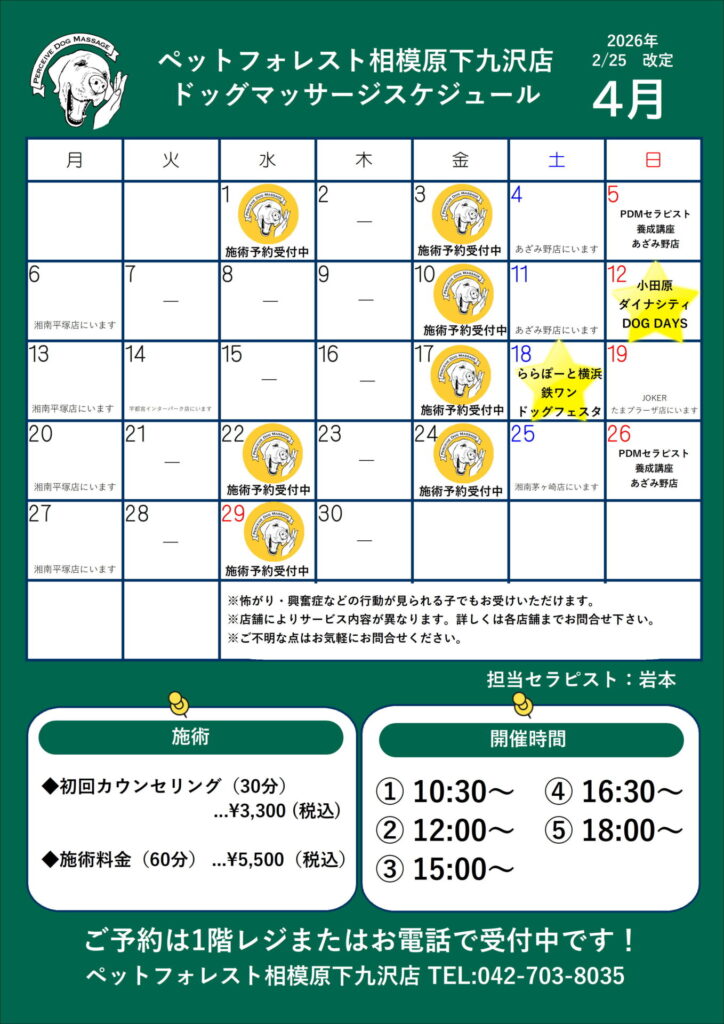 【水・金曜日】パーシヴ・ドッグマッサージのご案内