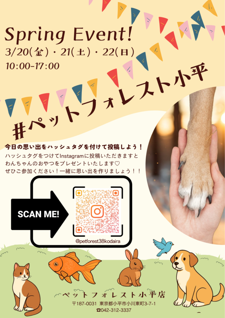 また今回のイベント内容をインスタグラムにて、【#ペットフォレスト小平】とタグ付け投稿いただきますと