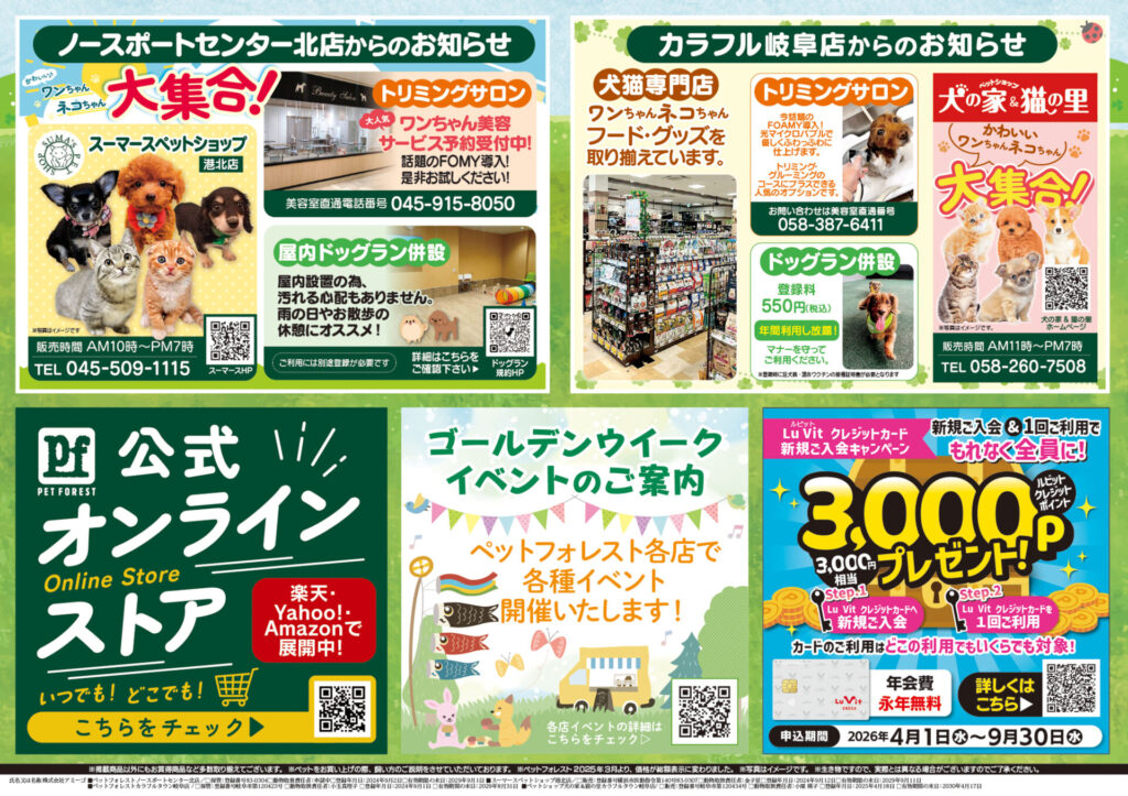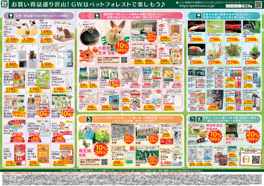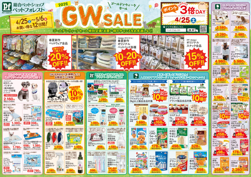 4/25(土)~5/6(水祝)はペットフォレストゴールデンウィークセールを開催します!