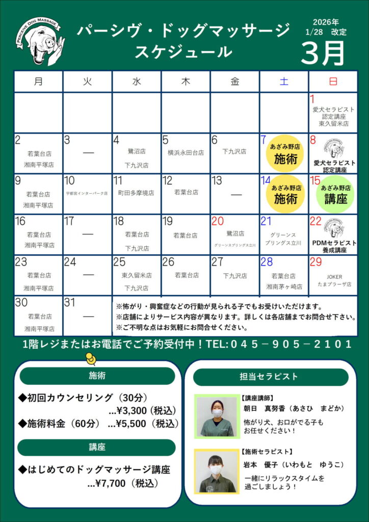 ドッグマッサージ施術開催日のお知らせ