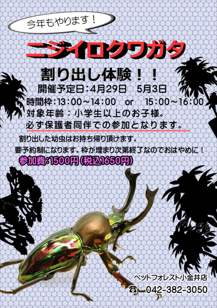 ニジイロクワガタ割り出し予約開始!!
