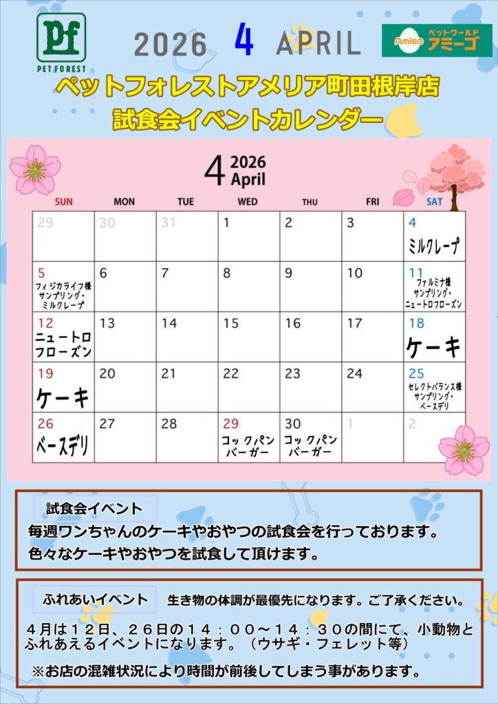 【26年4月】アメリア町田根岸店試食会イベントカレンダー‼