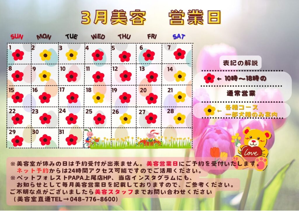 【2025年3月16日(日)から】スーマースペットショップ営業時間変更のお知らせ