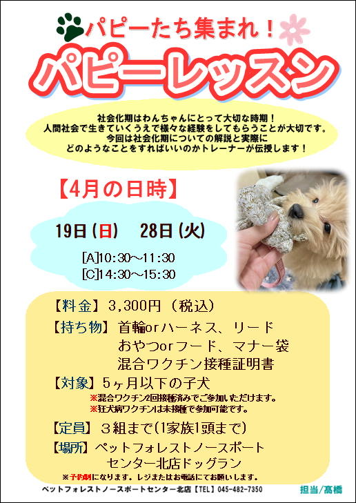 【2026年4月】パピーレッスン開催🐾