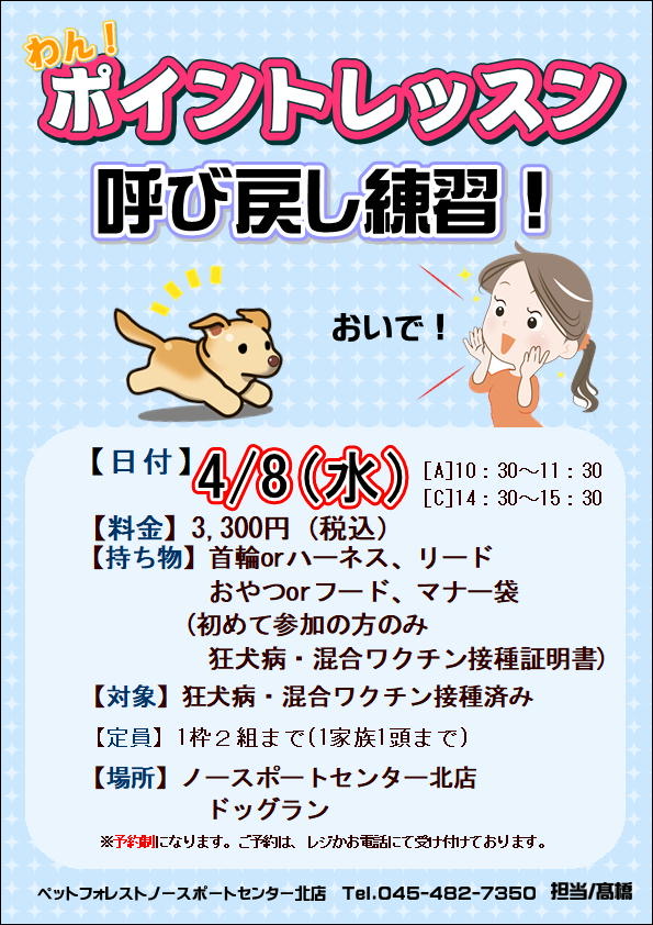 【2026年4月8日(水)】わんポイントレッスン「呼び戻し」