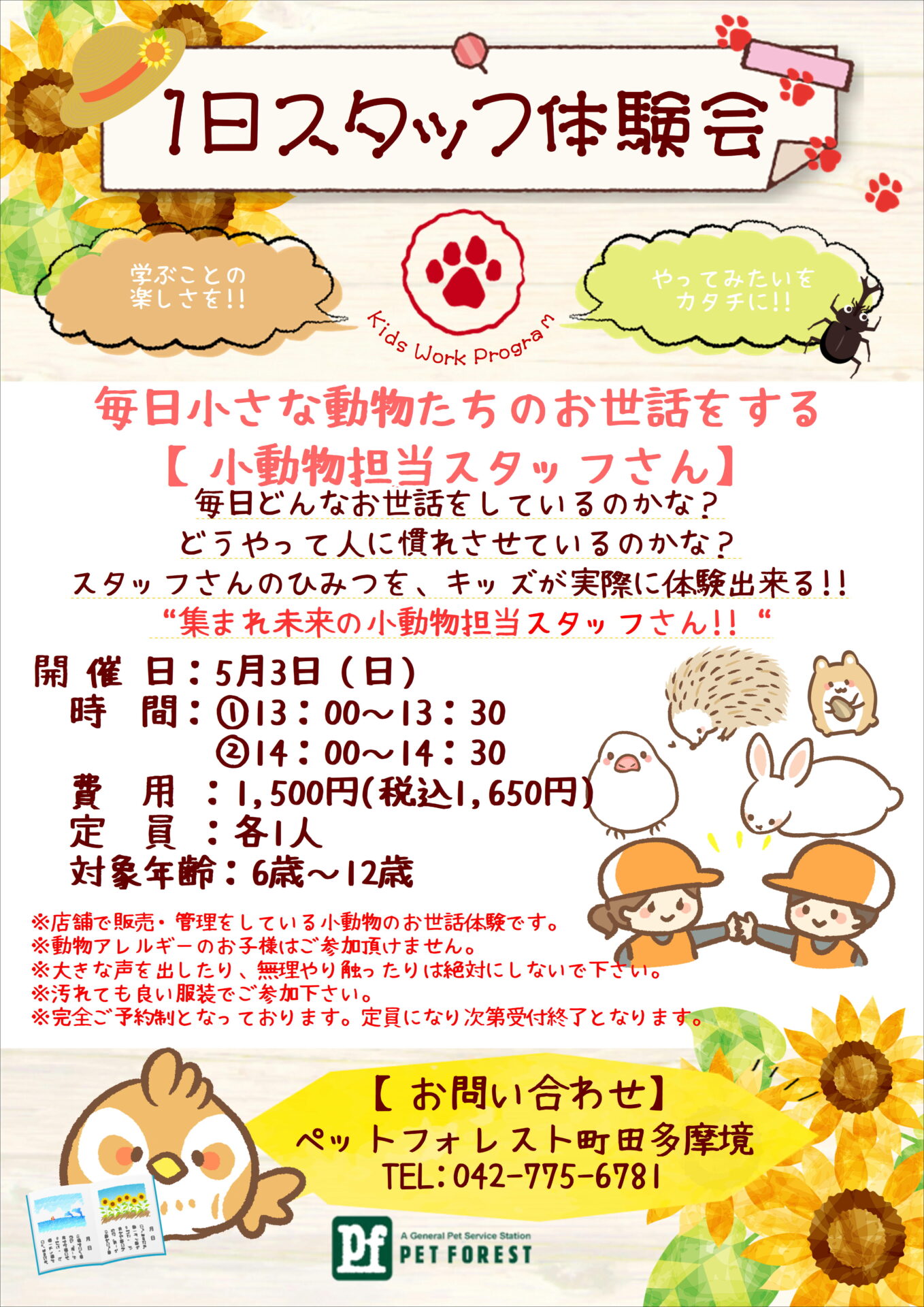 1日スタッフ体験会(鳥小動物担当)
