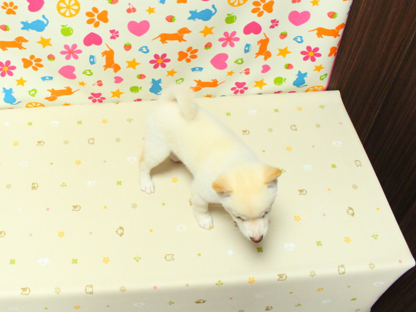 久しぶりに永田台店に登場した白柴くんです。両親の体重も4㌔と小柄な体型なので白柴くんも