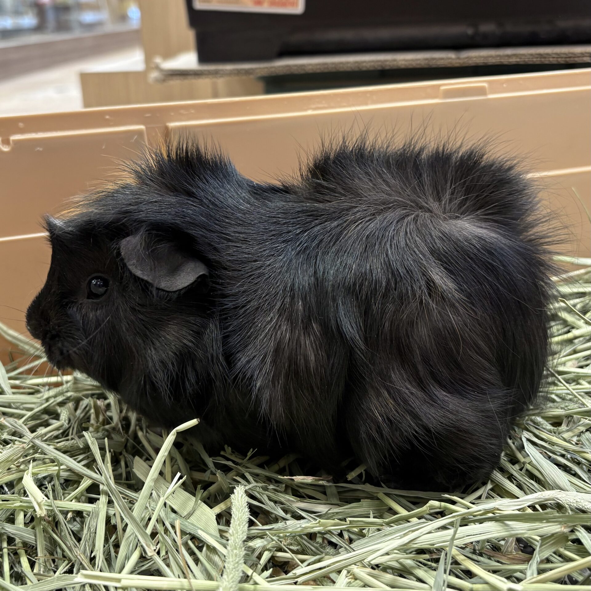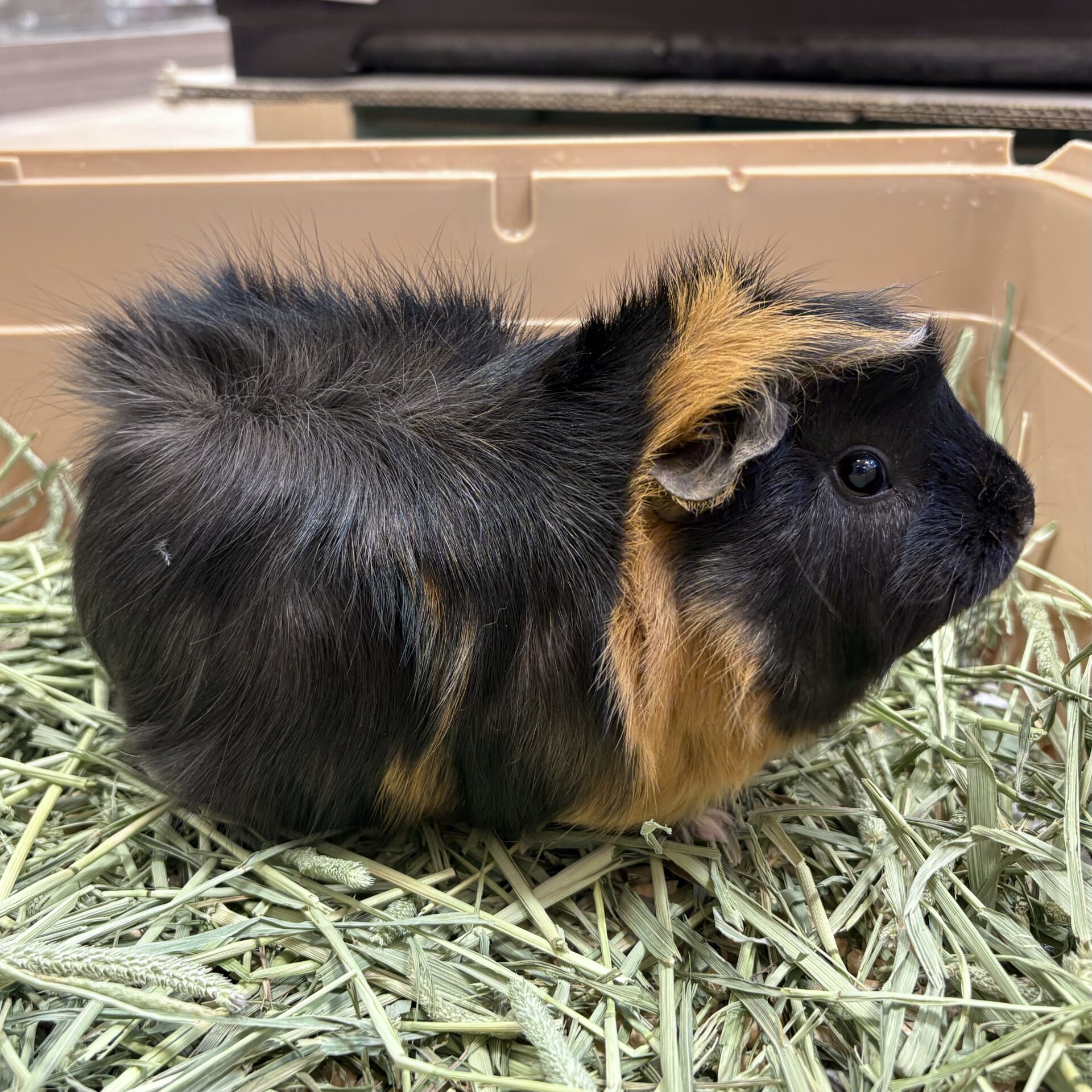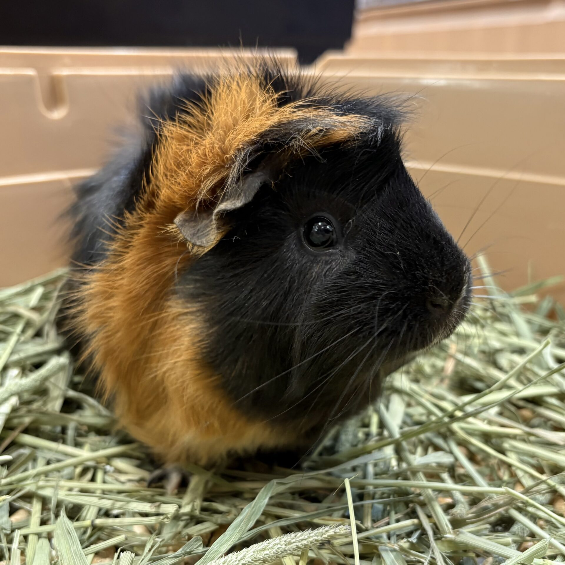 こちらの子は身体にたくさんのつむじがある巻き毛のモルモットちゃんです🥰人の気配を感じると顔を出してきてくれて頭を撫でられるのが大好きな子です🌟