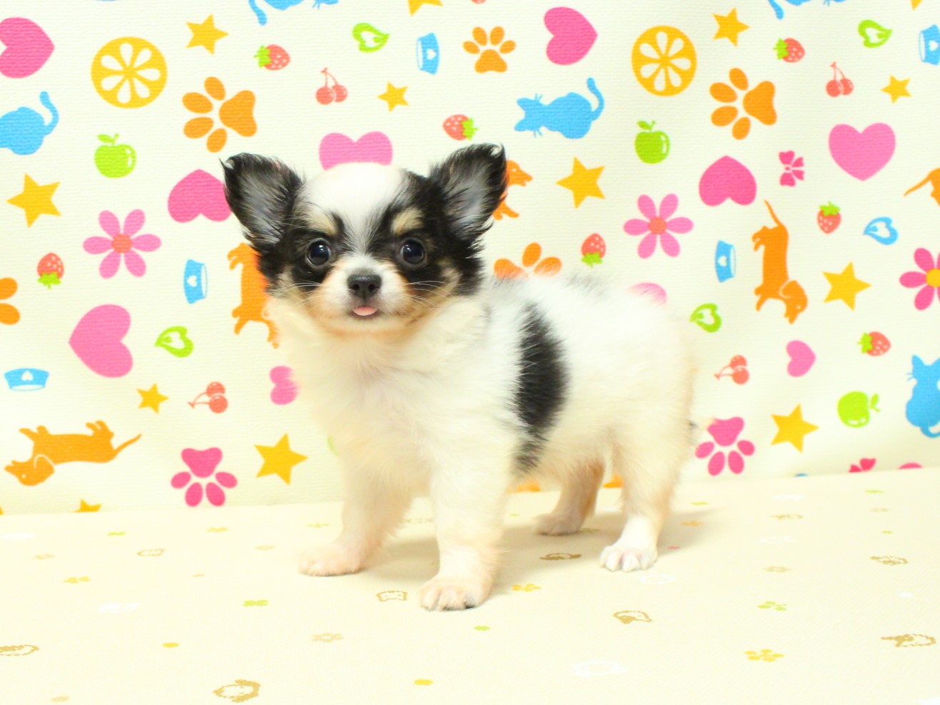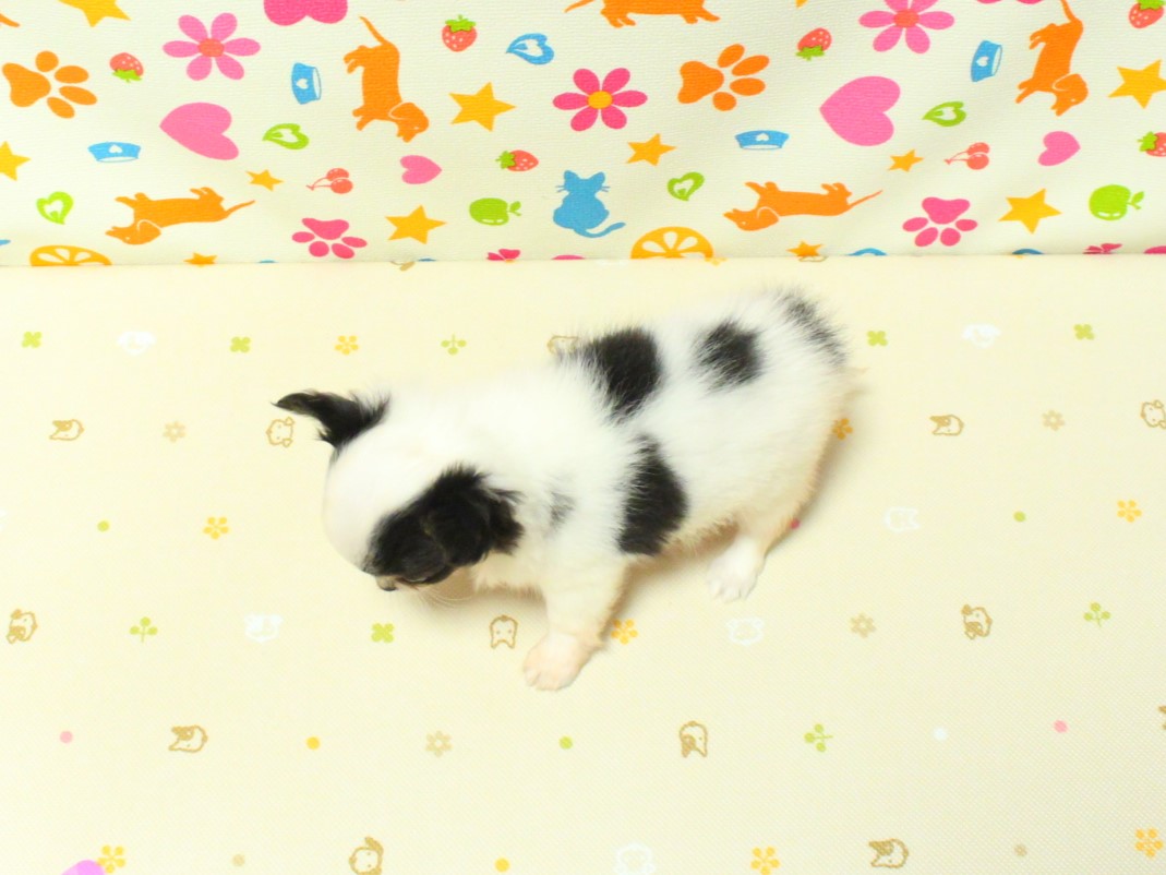 毛色:ホワイト&ブラックタン。