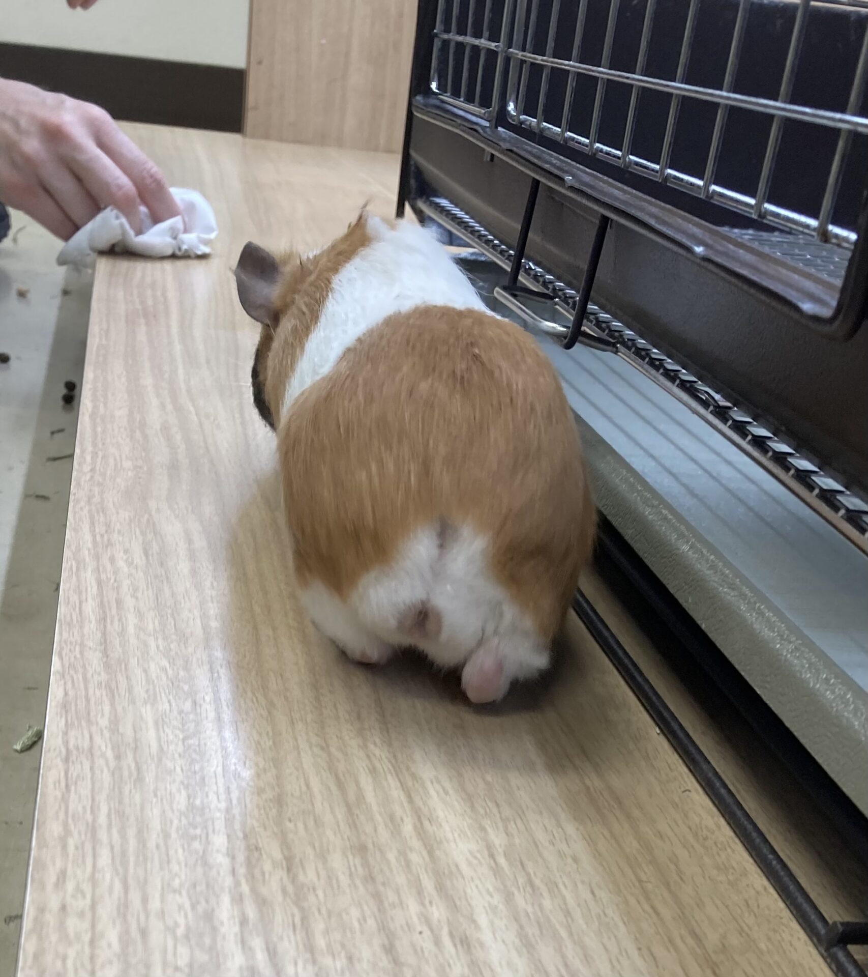 モルモットらしく、ビクッとすることもありますが、好奇心旺盛でウサギやチンチラと一緒にケージ外に出ていても、ついていこうとします!