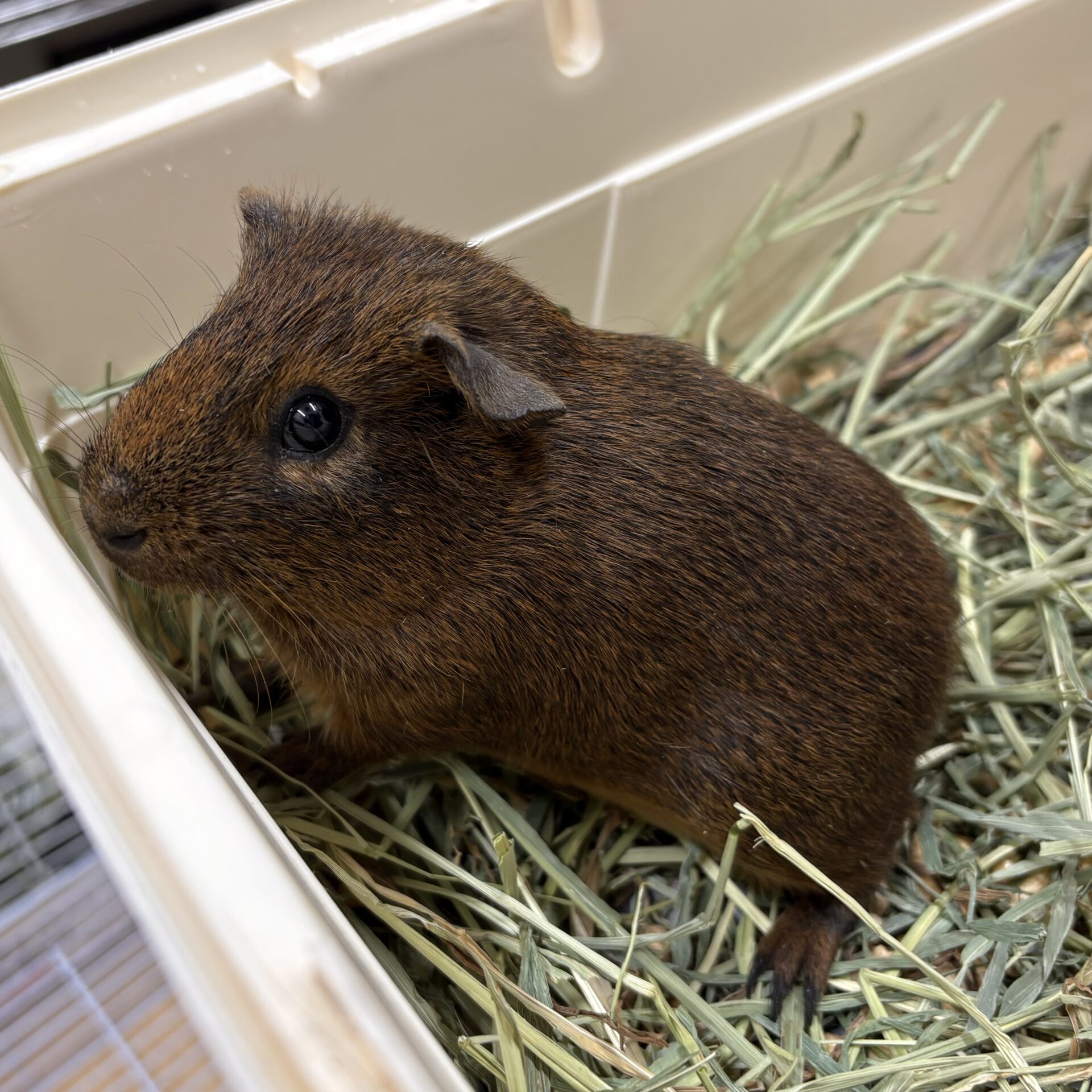 こちらの子はモルモットの中でも最もスタンダードな短毛ストレートヘアのモルモットちゃんです!ツヤツヤとした毛並みがとても綺麗です✨