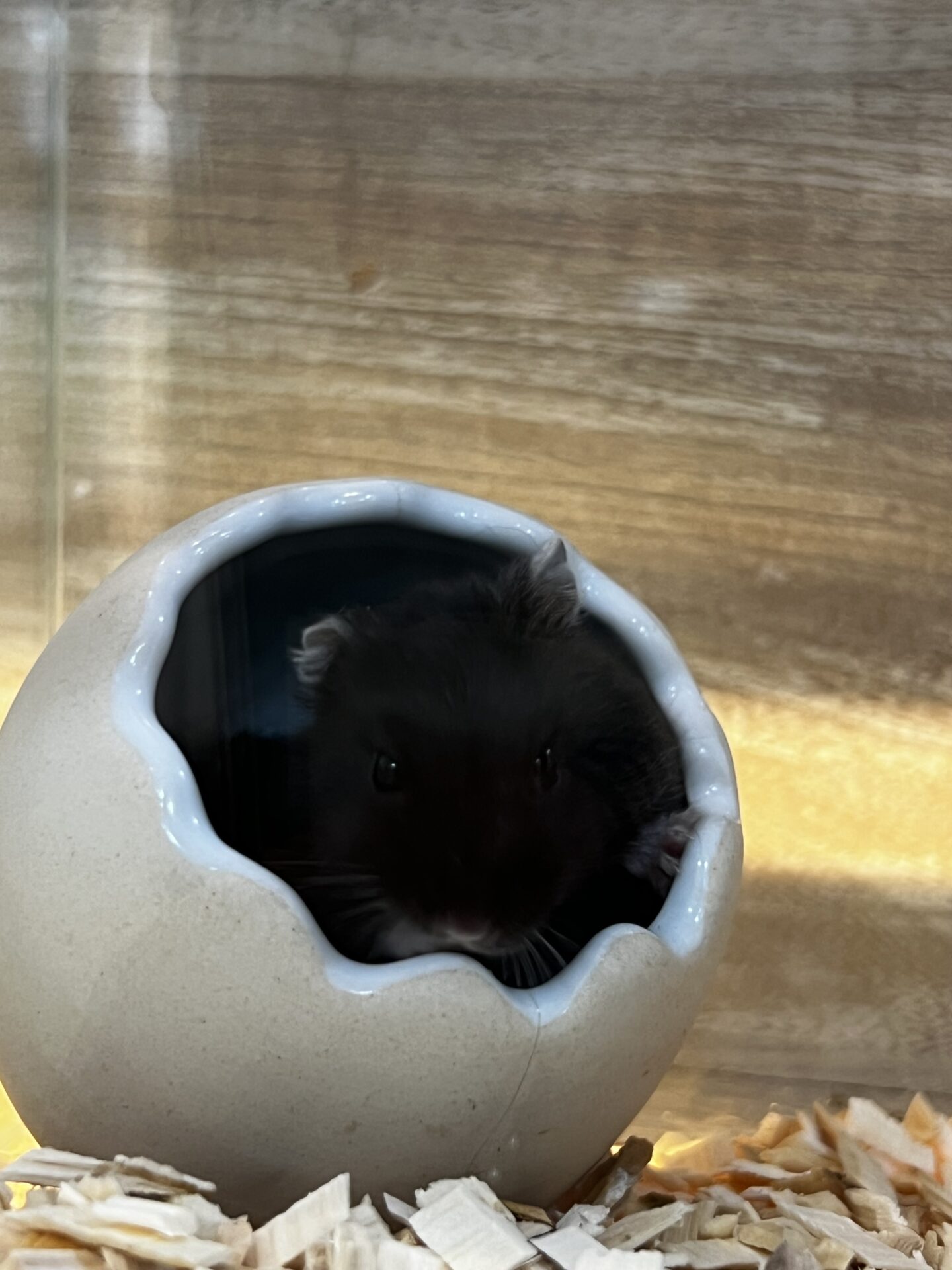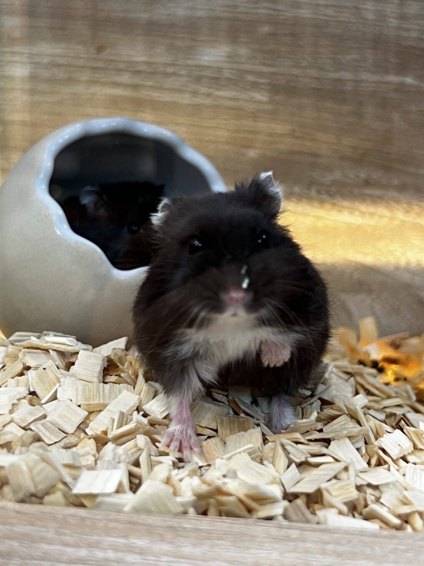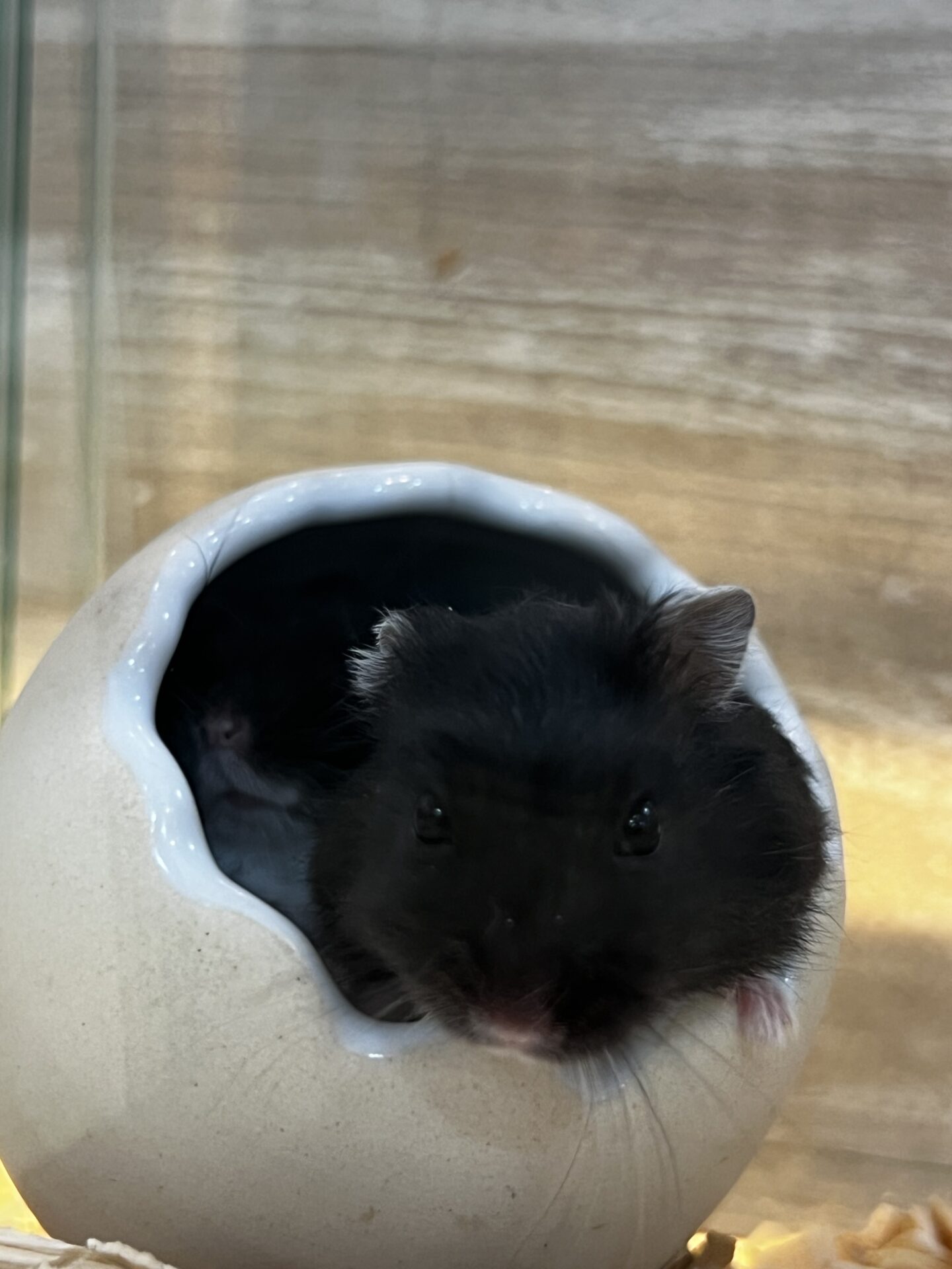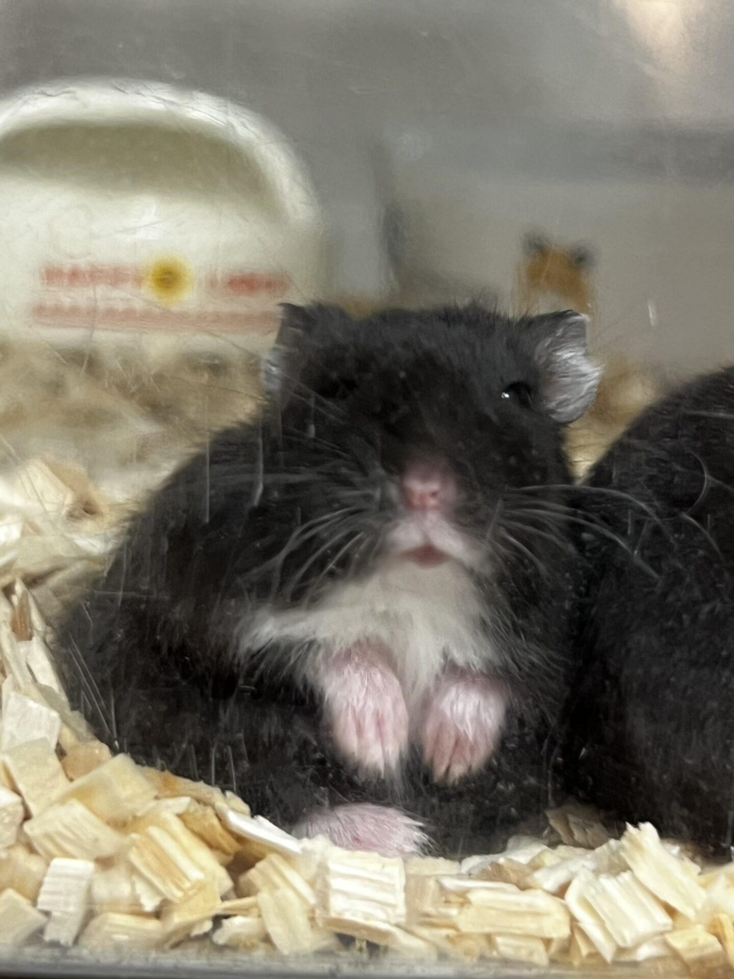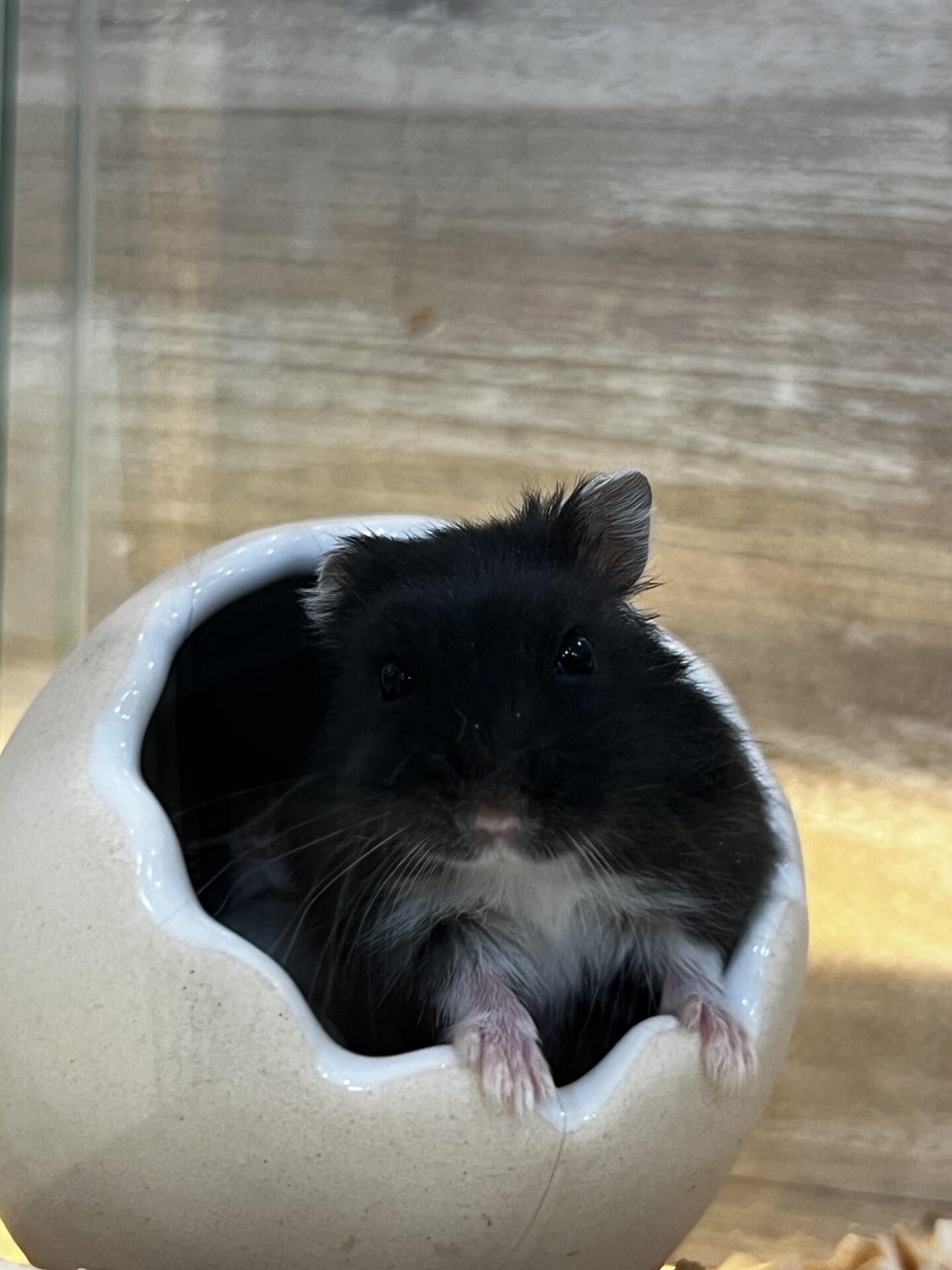 真っ黒ですがお腹は白いハムスターさんです🐹