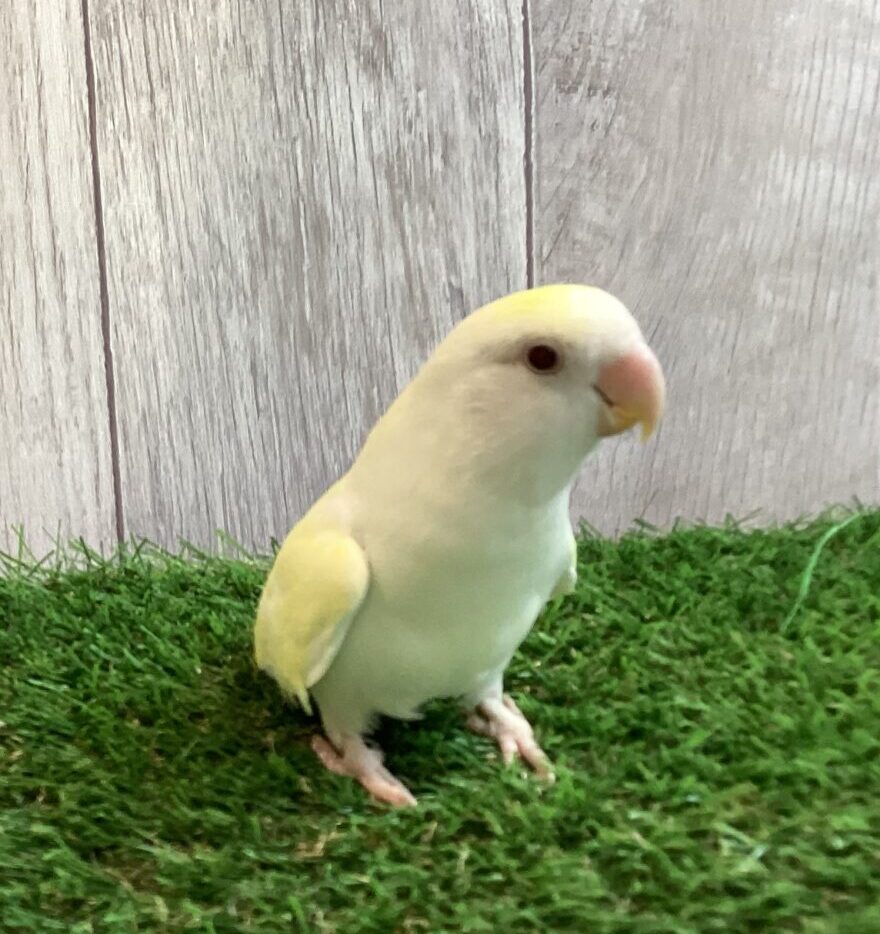 淡いイエローがとても綺麗なクリームルチノーカラーのコザクラインコです💛