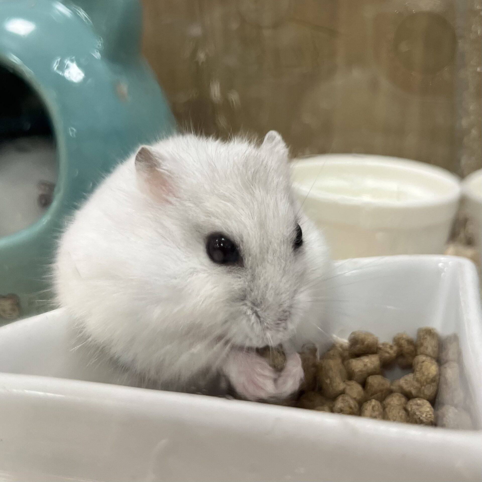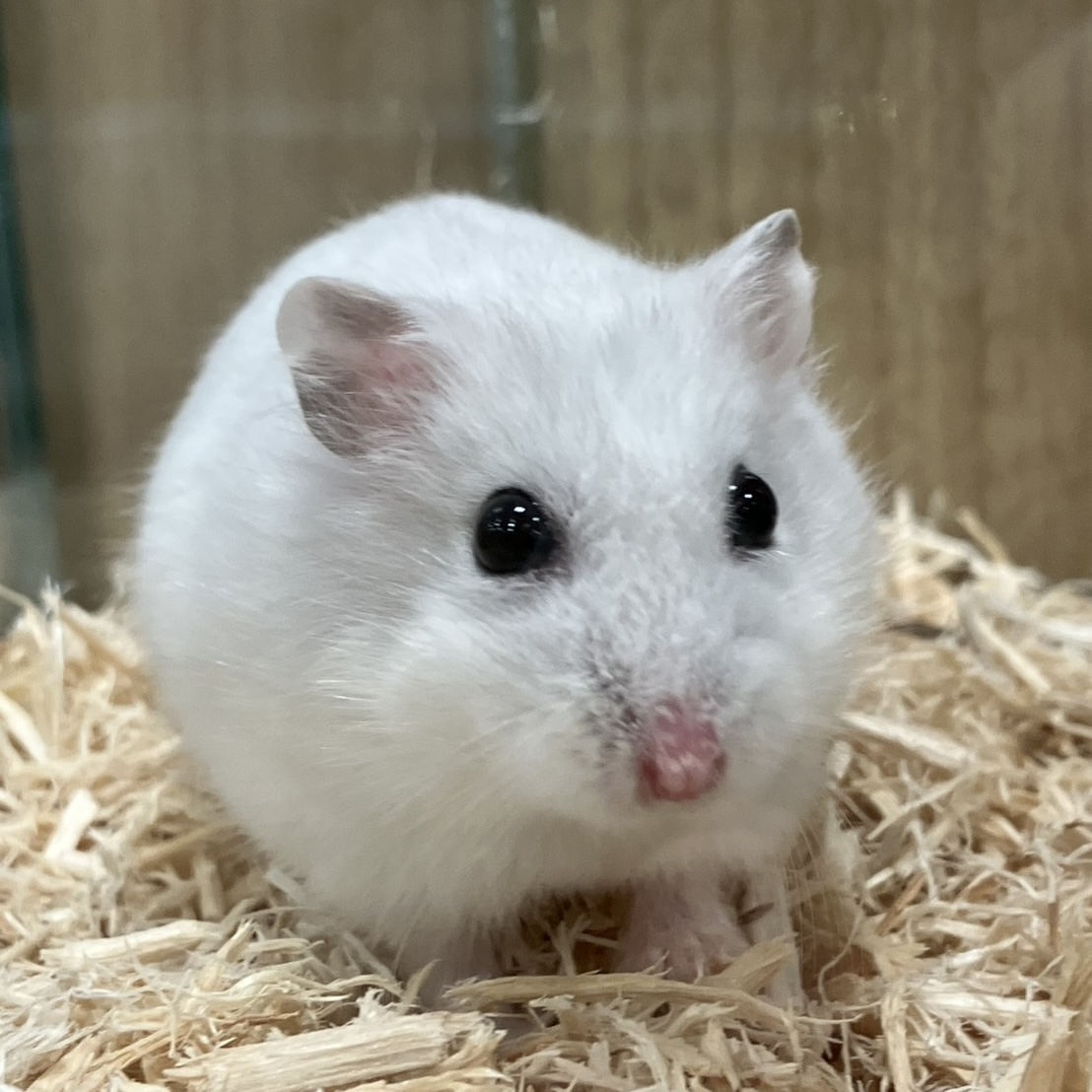 こちらの子たちのカラーはスノーホワイトという白い毛並みになっております!🐹