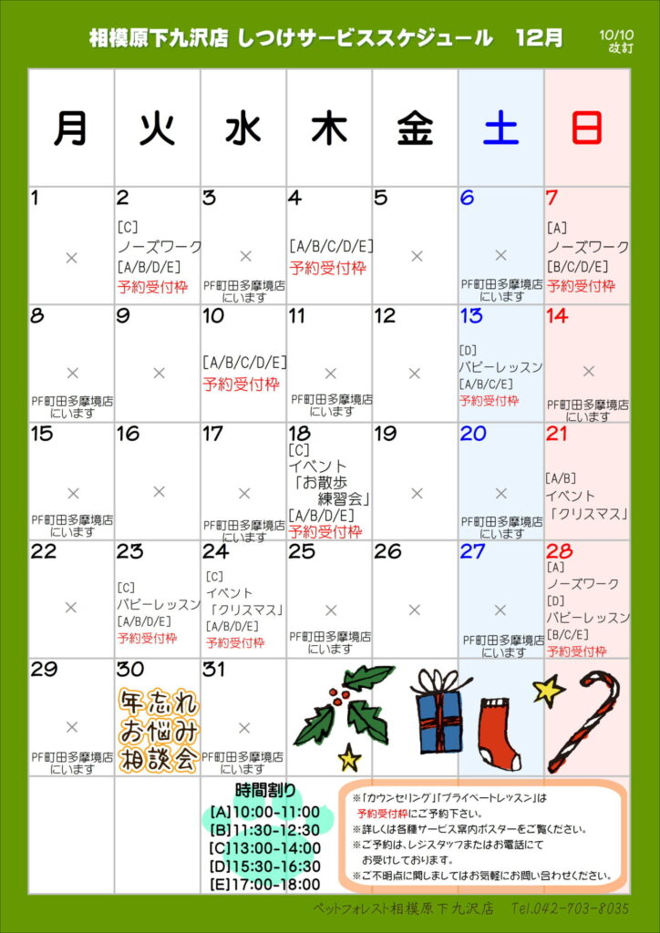 【2025年12月】しつけサービススケジュール♪