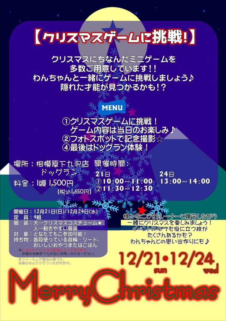 【2025年12月21日(日)/24日(水)】★☆わんちゃんクリスマスイベント開催☆★