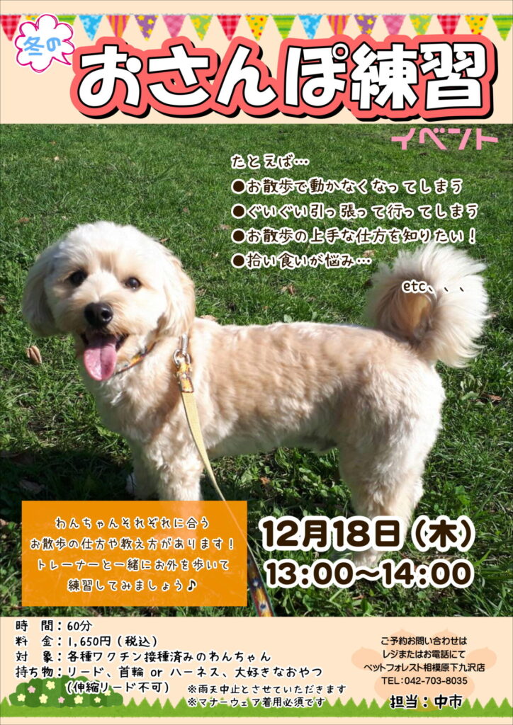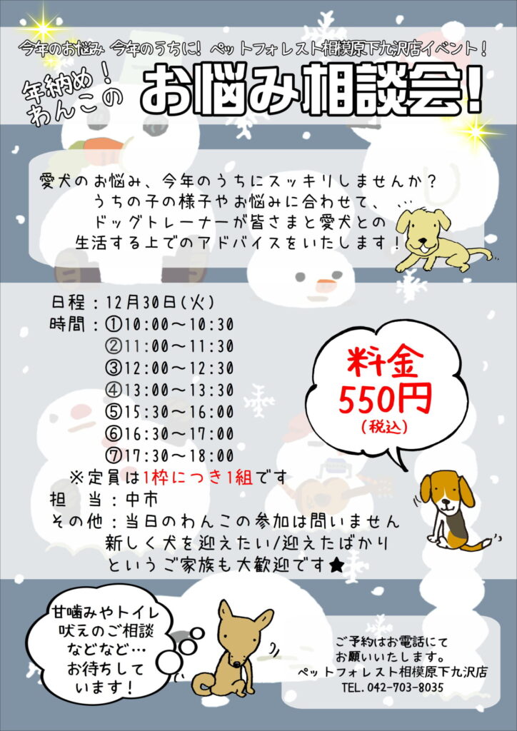 【2025年12月30日(火)】年忘れ!わんちゃんお悩み相談会開催♪