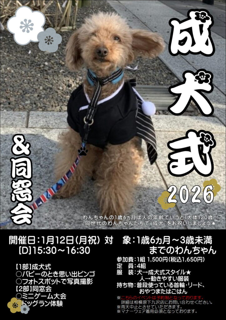 【2026年1月12日(月祝)】★☆成犬式2026開催☆★