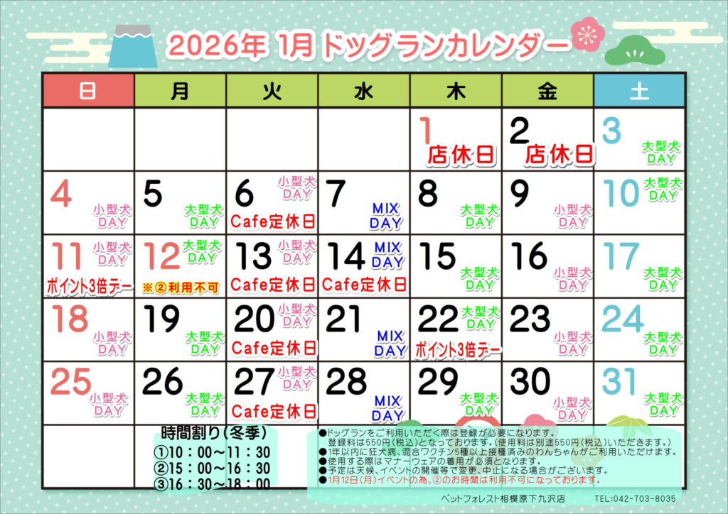 ★1月ドッグランカレンダー★