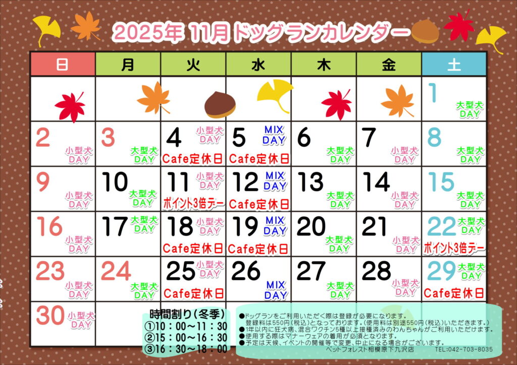 相模原下九沢店11月ドッグランカレンダー